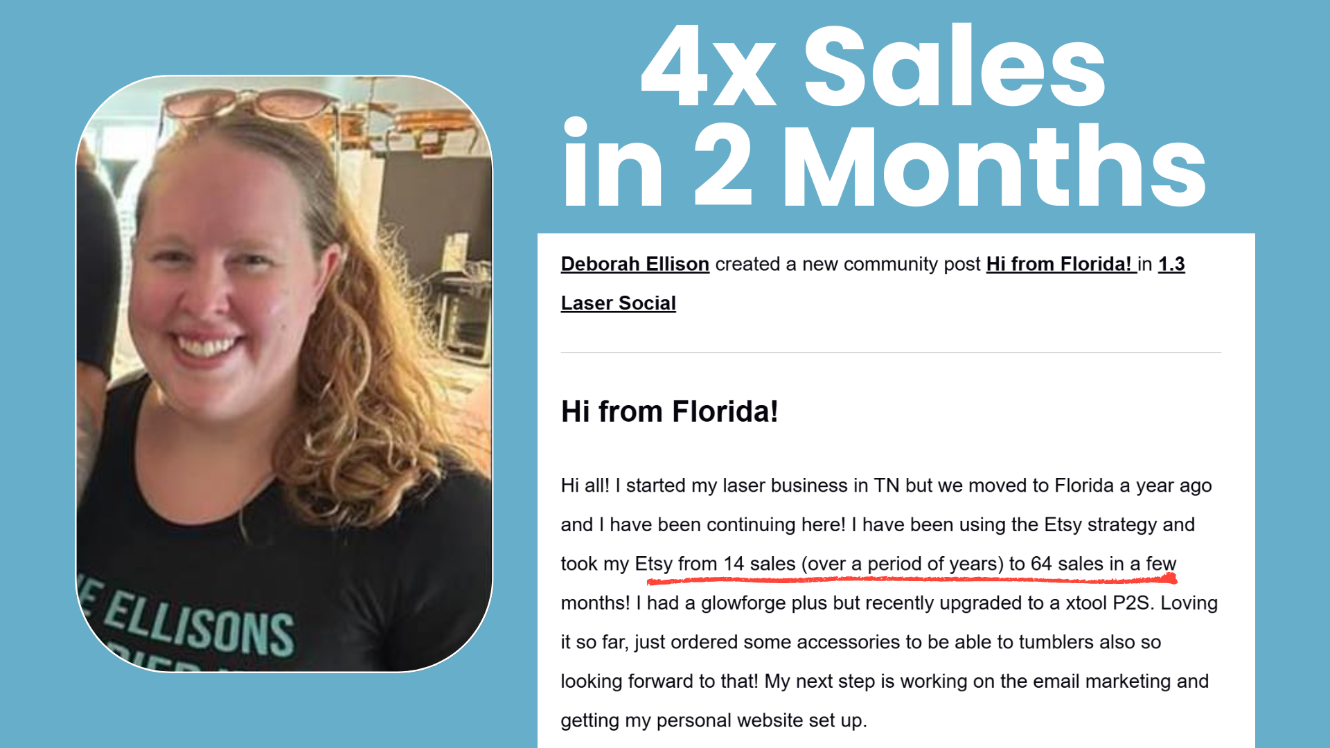 "I have been using the Etsy strategy and it took my Etsy from 14 sales (over a period of years) to 64 sales in a few months!" - Deb E.