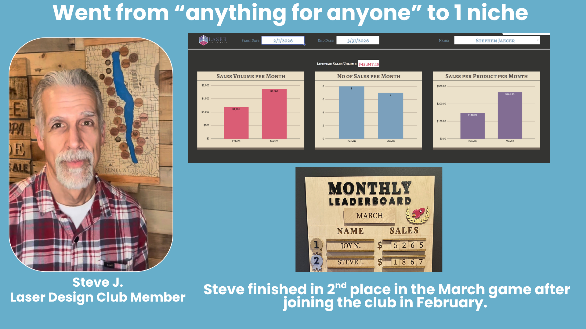 “I was already getting orders but making anything for anyone; LDC helped me pick one lane, focus my niche, and finally build a laser business that can actually thrive.” - Steve J.