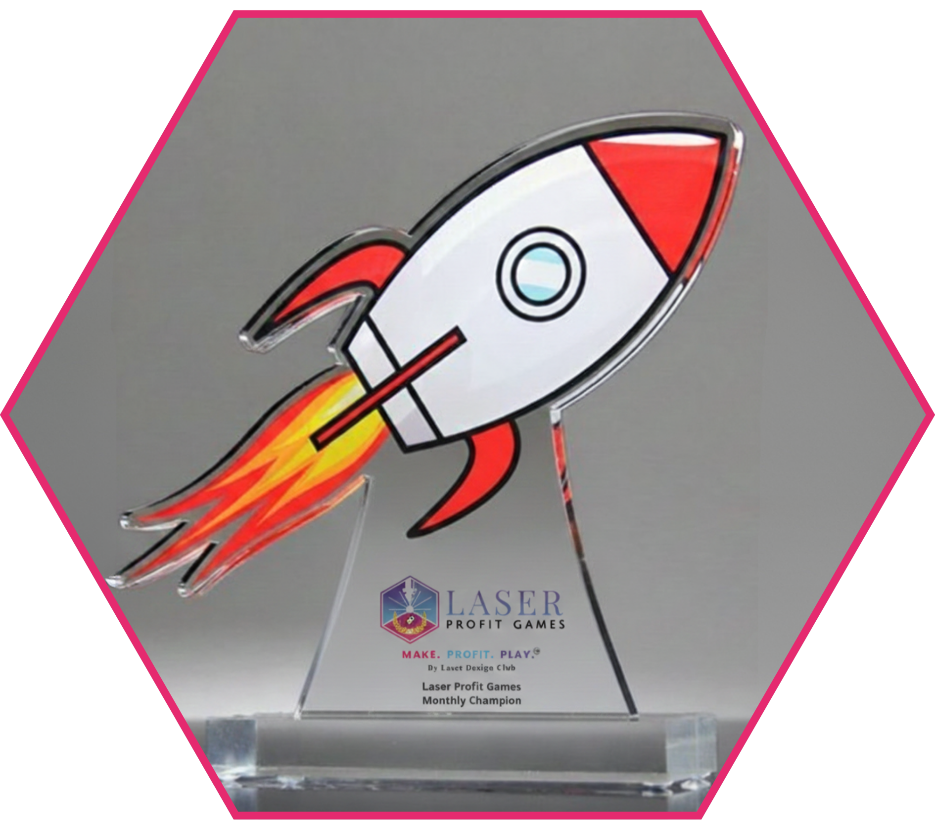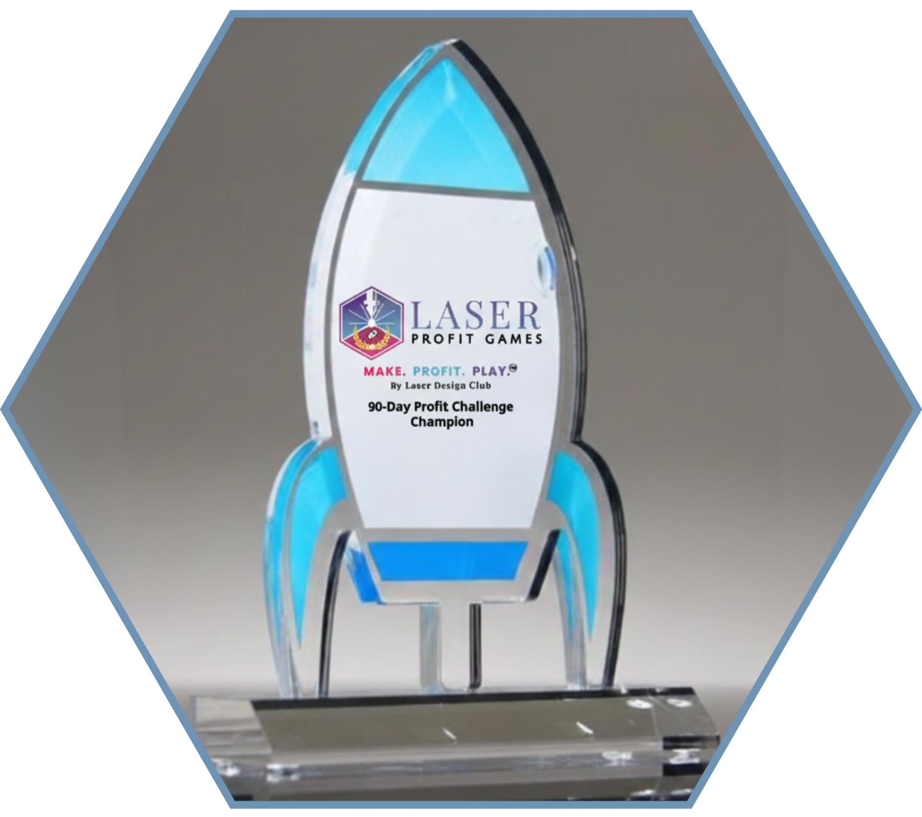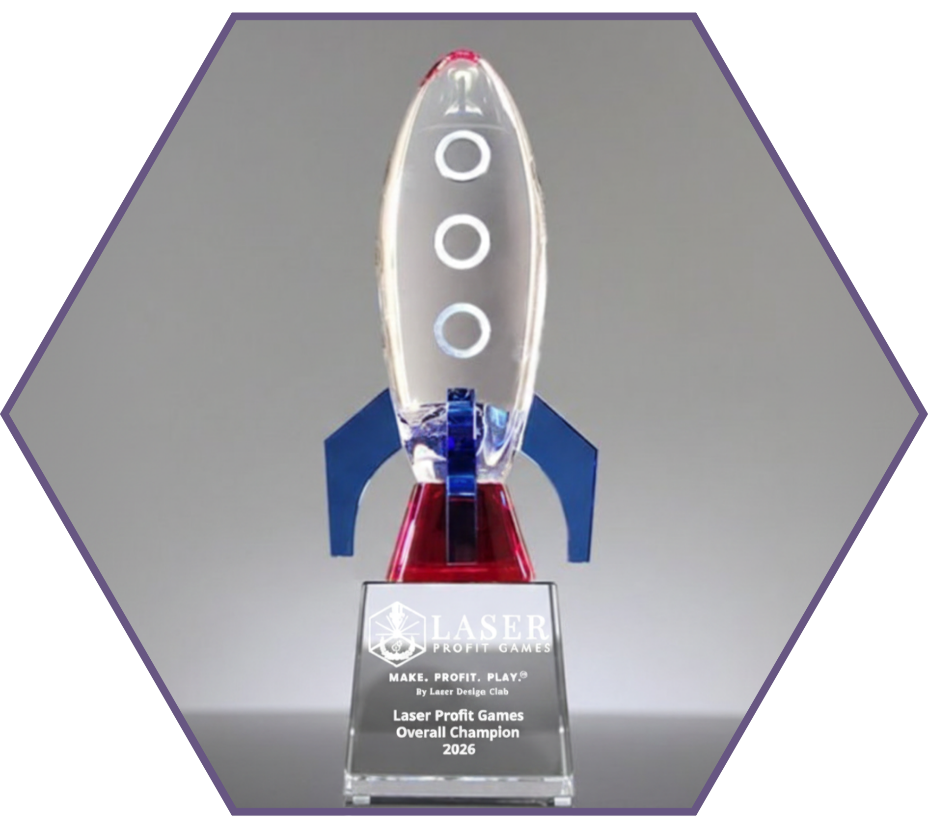 Yearly: At the end of the year, we crown the Laser Profit Games Champion. The Champion takes home a custom crystal trophy plus their choice of $7,000 in machine credit to Thunder Laser USA or $5,000 in cash.