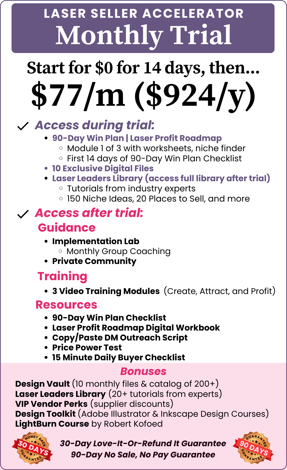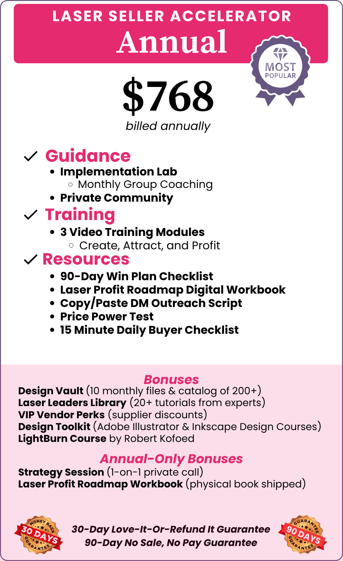 And that’s what this membership is all about—giving you the same roadmap we used to break free from the feast-or-famine cycle and build a laser business that provides: